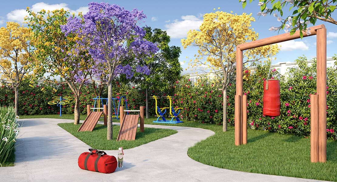 O empreendimento conta com diversas opções de lazer e convivência, como bicicletário, fitness externo, horta comunitária, playground, praça de jogos, salão de festas, redário e churrasqueira — tudo para proporcionar mais qualidade de vida, conforto e praticidade no dia a dia.